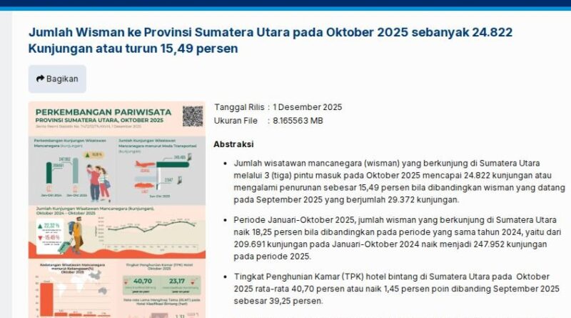 Data terbaru menunjukkan bahwa puncak kunjungan wisatawan mancanegara ke Sumut pada bulan Oktober menurun drastis dibandingkan tahun sebelumnya. Berbagai faktor, termasuk kondisi ekonomi global dan situasi politik yang tidak stabil, berkontribusi terhadap penurunan ini. Para pelaku industri pariwisata merasa dampaknya cukup besar, mulai dari hotel, restoran, hingga penyedia jasa transportasi yang semua merasakan imbasnya.